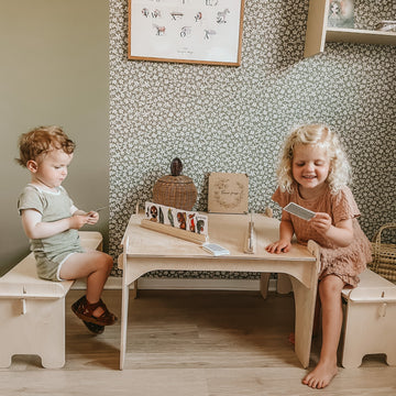De meubels kunnen gemakkelijk worden gemonteerd en gedemonteerd. Wat geweldig is als je weinig ruimte in huis hebt en je het krukje of speeltafeltje even weg moet zetten.