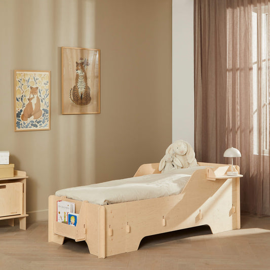 Mooi Deens design en hoge kwaliteit gaan hand in hand in de duurzame kindermeubels van PixiForm. Onze producten worden uitsluitend gemaakt van FSC-gecertificeerd hout. We gebruiken geen olie, verf of lak voor de behandeling van de meubels. Het materiaal is 9 mm berkenhout multiplex, dat zowel mooi als stevig is. Elk meubel heeft een prachtige en unieke uitstraling, omdat het hout een gevarieerd en prachtig kleurenspel heeft dat de producten karakter geeft. De meubels hebben een ruw, eenvoudig en stijlvol ontwerp dat past in de meeste huizen. Bovendien kunnen onze meubels eenvoudig worden gemonteerd zonder het gebruik van gereedschap. Ze worden gemonteerd met behulp van een slim kliksysteem. Daarom is het ook snel en eenvoudig om de meubels uit elkaar te halen en op te bergen als de ruimte even voor iets anders nodig is.