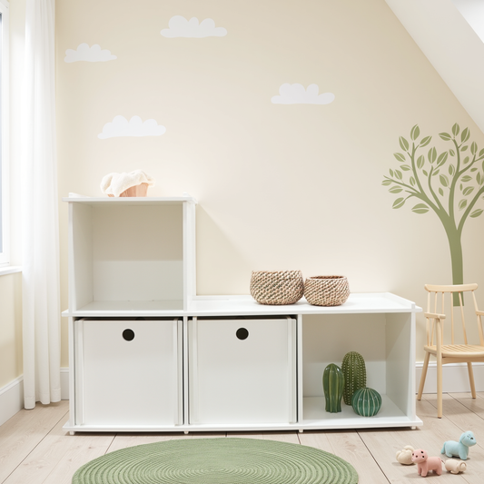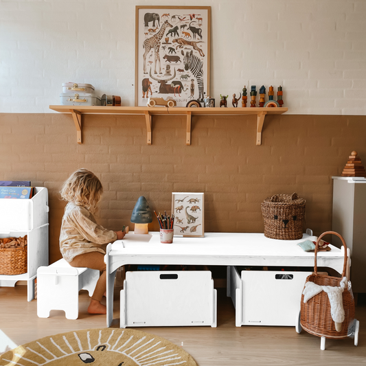Je kunt bijvoorbeeld kindermeubels gebruiken om een ruimte op te delen of als je kinderen bijvoorbeeld een kamer delen. Misschien wil je een speelgedeelte en een slaapgedeelte op de kinderkamer maken. Het is ook snel en eenvoudig om een speelhoek in de woonkamer of keuken te creëren die tegelijkertijd stijlvol en goed past bij de lichte Scandinavische stijl die tegenwoordig populair is.