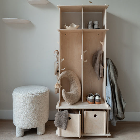 Wanneer u een kinderkamer of speelkamer moet inrichten, is het verstandig om te kiezen voor stevige meubelen van goede kwaliteit, die bovendien mooi zijn om te zien, verplaatsbaar zijn en in het interieur passen. Pixiform is een nieuw Deens merk op de markt en wij leveren Deens design van hoge kwaliteit. Al onze meubelen zijn gemaakt van berkenmultiplex. Onze meubels hebben een rauw, eenvoudig en stijlvol design. Berkenmultiplex is een sterk en licht materiaal, waardoor de meubelen gemakkelijk te verplaatsen zijn. Verplaats bijvoorbeeld de kindertafel en -stoelen eenvoudig naar de keuken als de kinderen daar moeten blijven en teken of speel terwijl u de maaltijden voor het gezin klaarmaakt. Het meubel is eenvoudig en snel in elkaar te zetten door middel van een slim kliksysteem, waardoor er voor de montage geen schroeven of iets anders nodig is. Dit betekent ook dat de meubelen snel tentoongesteld en opgeborgen kunnen worden of meegenomen kunnen worden wanneer u bijvoorbeeld op bezoek moet bij de grootouders.