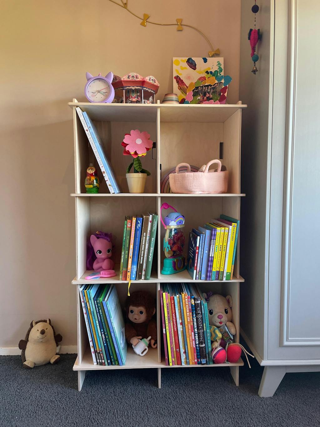 Mooie kast welke eenvoudig maar stevig in elkaar te zetten is. De kast zorgt voor een opgeruimde slaapkamer voor mama en het speelgoed en de boeken in het zicht en op hoogte van het kind. Precies wat ik zocht, opgeruimd voor mij en overzichtelijk voor haar. De natuurlijke look van de kast geeft een rustgevende uitstraling.