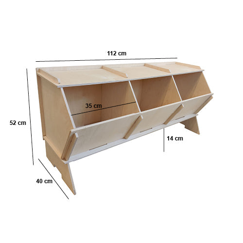 Met zijn 3 compartimenten kun je verschillende soorten speelgoed sorteren en bijhouden, zodat knuffels, poppen en auto's elk hun eigen compartiment kunnen hebben.