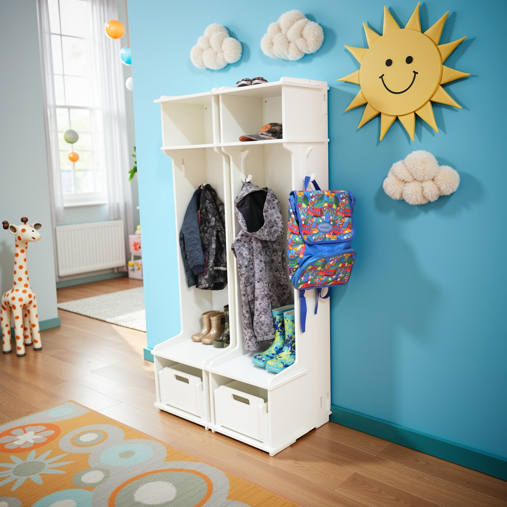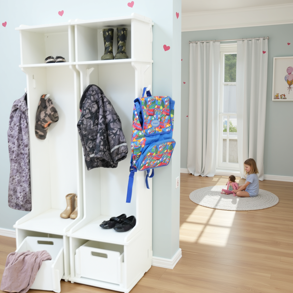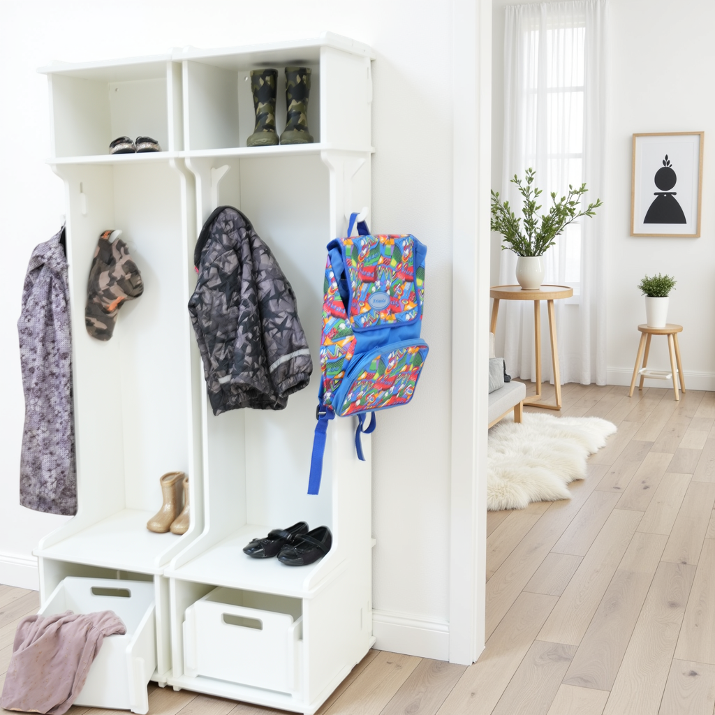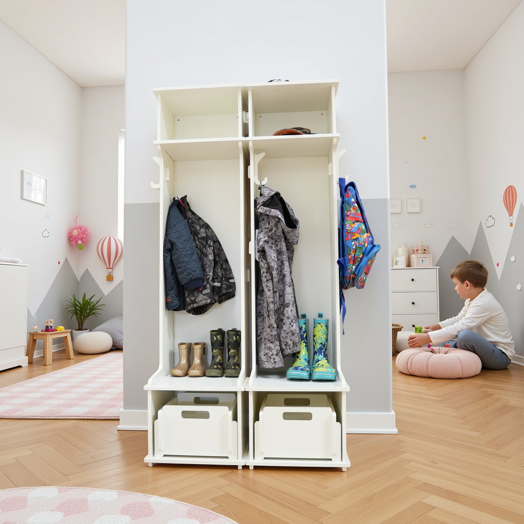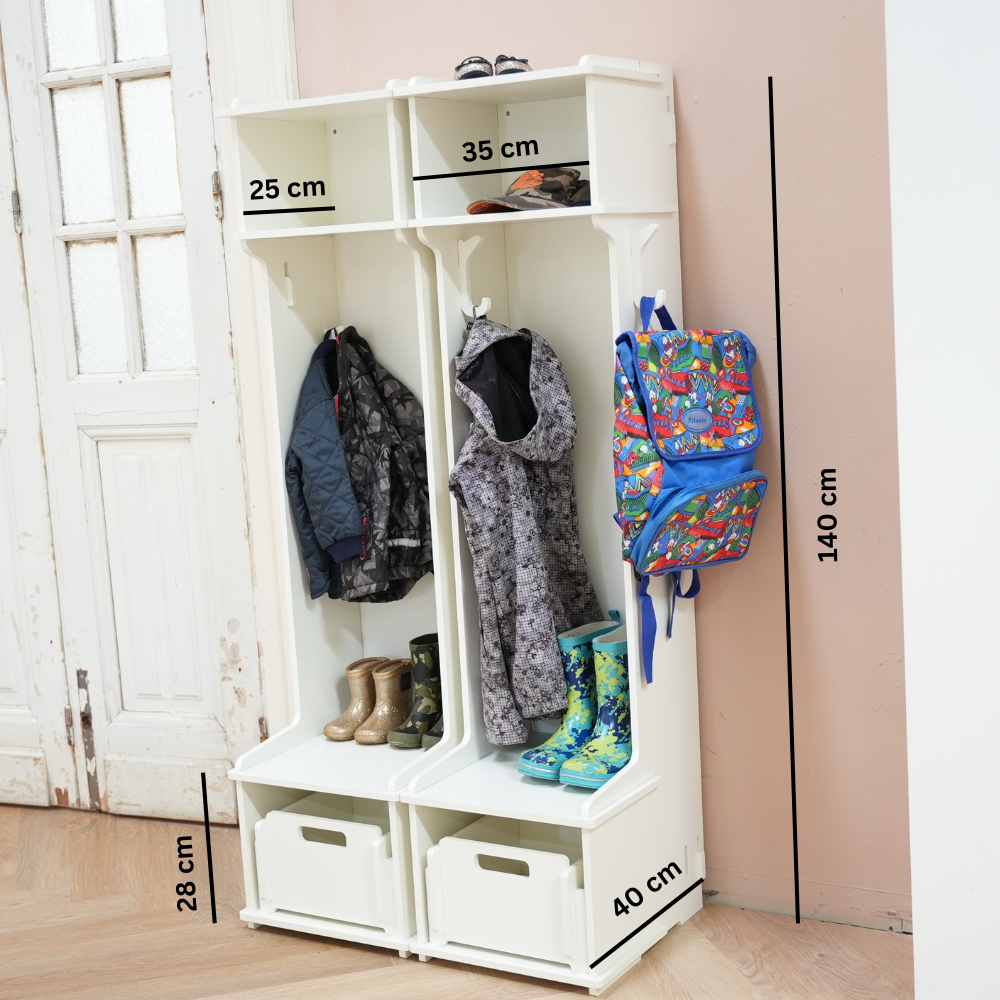 De combiset bestaat uit: 2 garderobekasten incl. 3 extra haken en 2 Christina opbergdozen die perfect onderin Bertram passen.