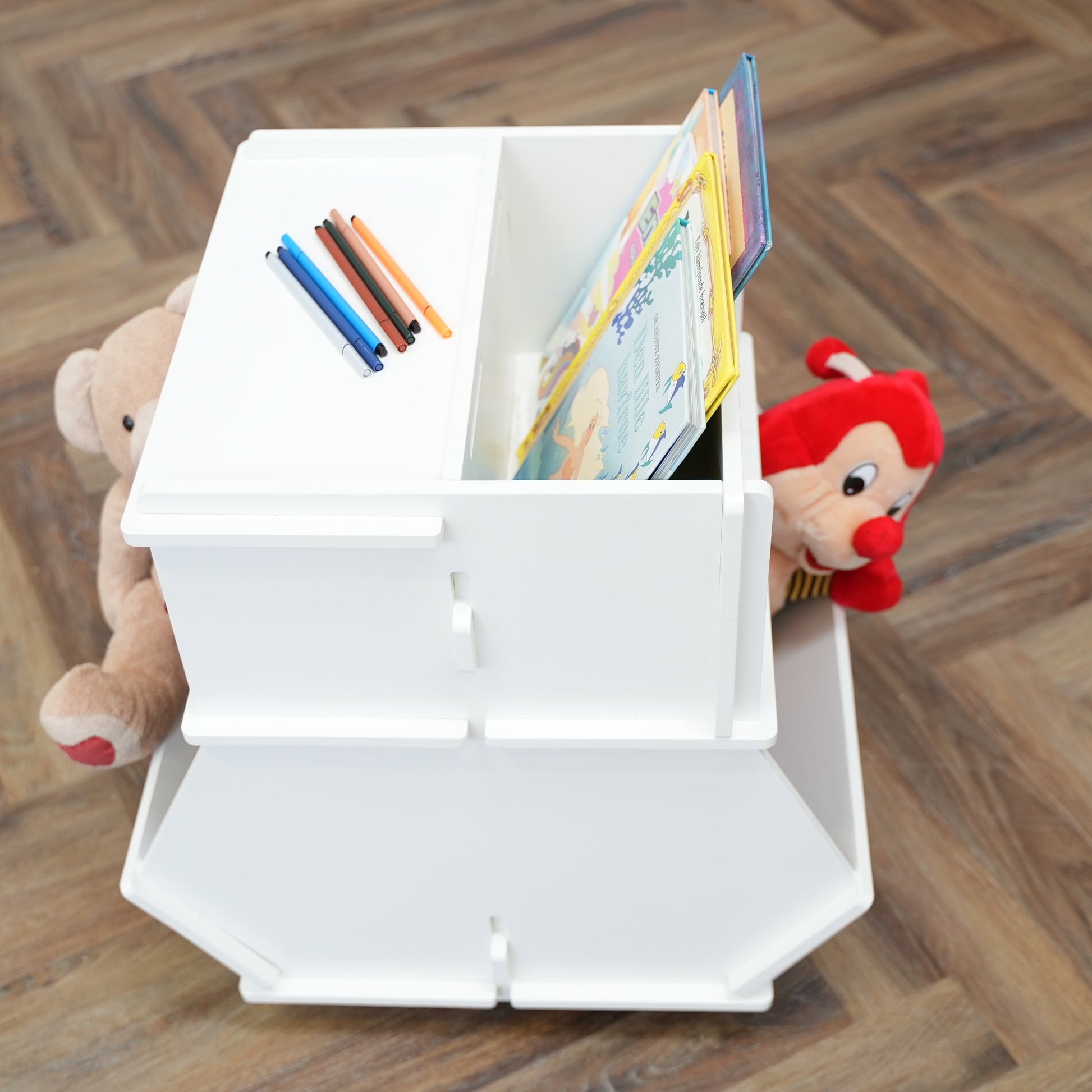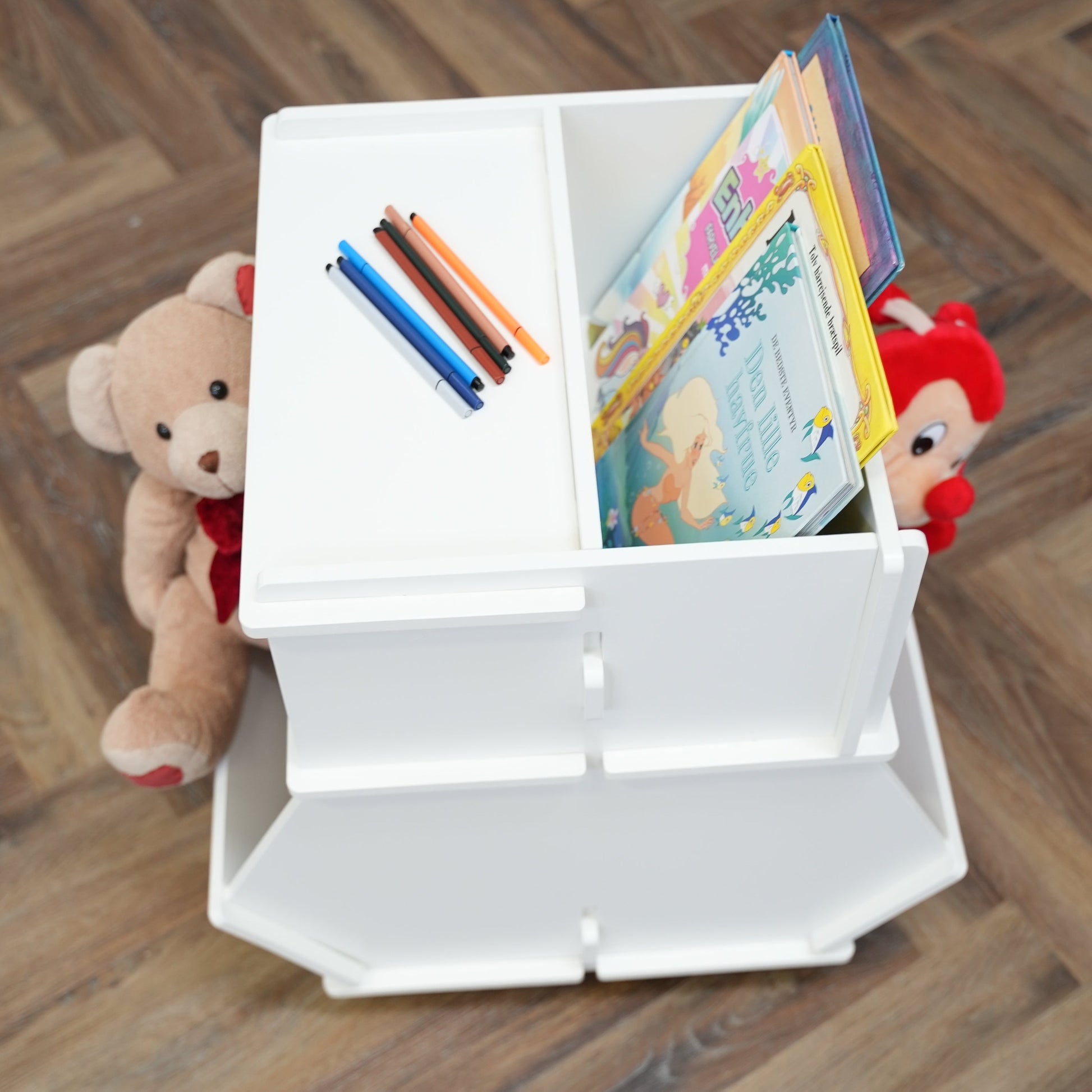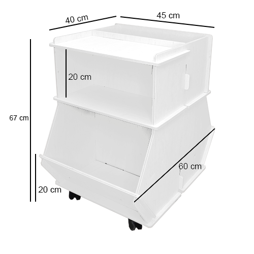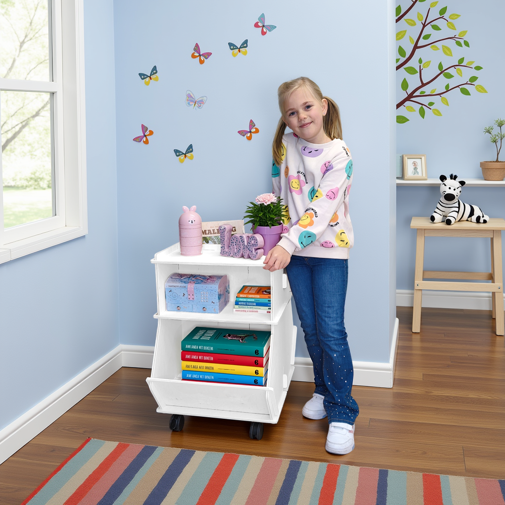 Alberte is een slimme en functionele rolwagen, ontworpen om alles wat de kleinsten in het gezin nodig hebben op te bergen – van speelgoed en knutselspullen tot boeken en nog veel meer.