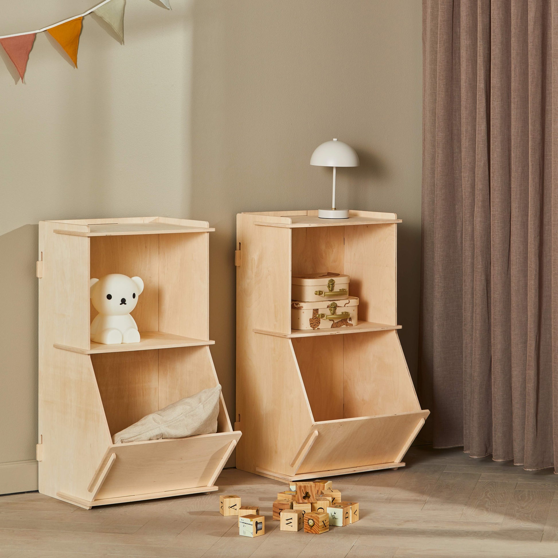 Waar Olivia opvalt en een slimme functie heeft is met de schuine voorkant aan de onderkant, die niet alleen voor een plank zorgt, maar meer een functie heeft als opbergdoos, waar allerlei "los" speelgoed in opgeborgen kan worden.