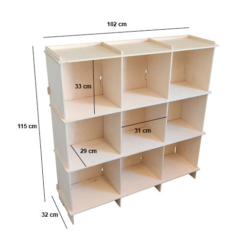 Met ons grote Kasper kamerscherm / kubuskast met 3 rijen en 9 grote vakken heb je genoeg ruimte en de vakken zijn perfect voor ringbanden, boeken, veel opbergdozen, spelletjes/puzzels en nog veel meer.