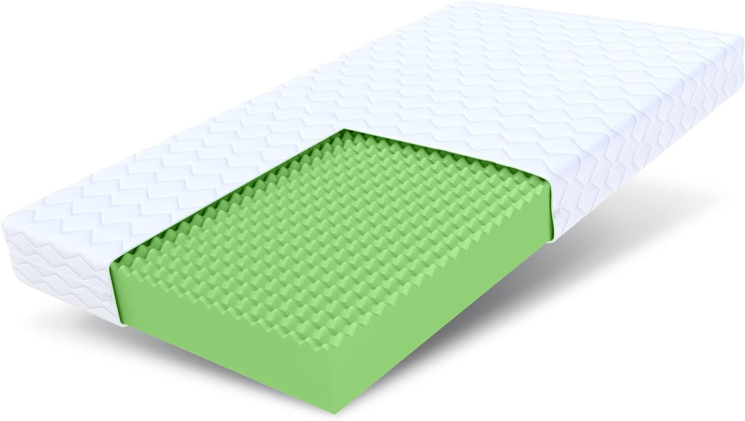 - GEPROFILEERD POLYURETHAANSCHUIM aan één zijde. De ademende poriën in het koudschuim zorgen voor een goede luchtcirculatie, wat zorgt voor een optimale thermoregulatie op het oppervlak van de matras en de vochtigheid in het schuim in evenwicht brengt.