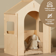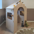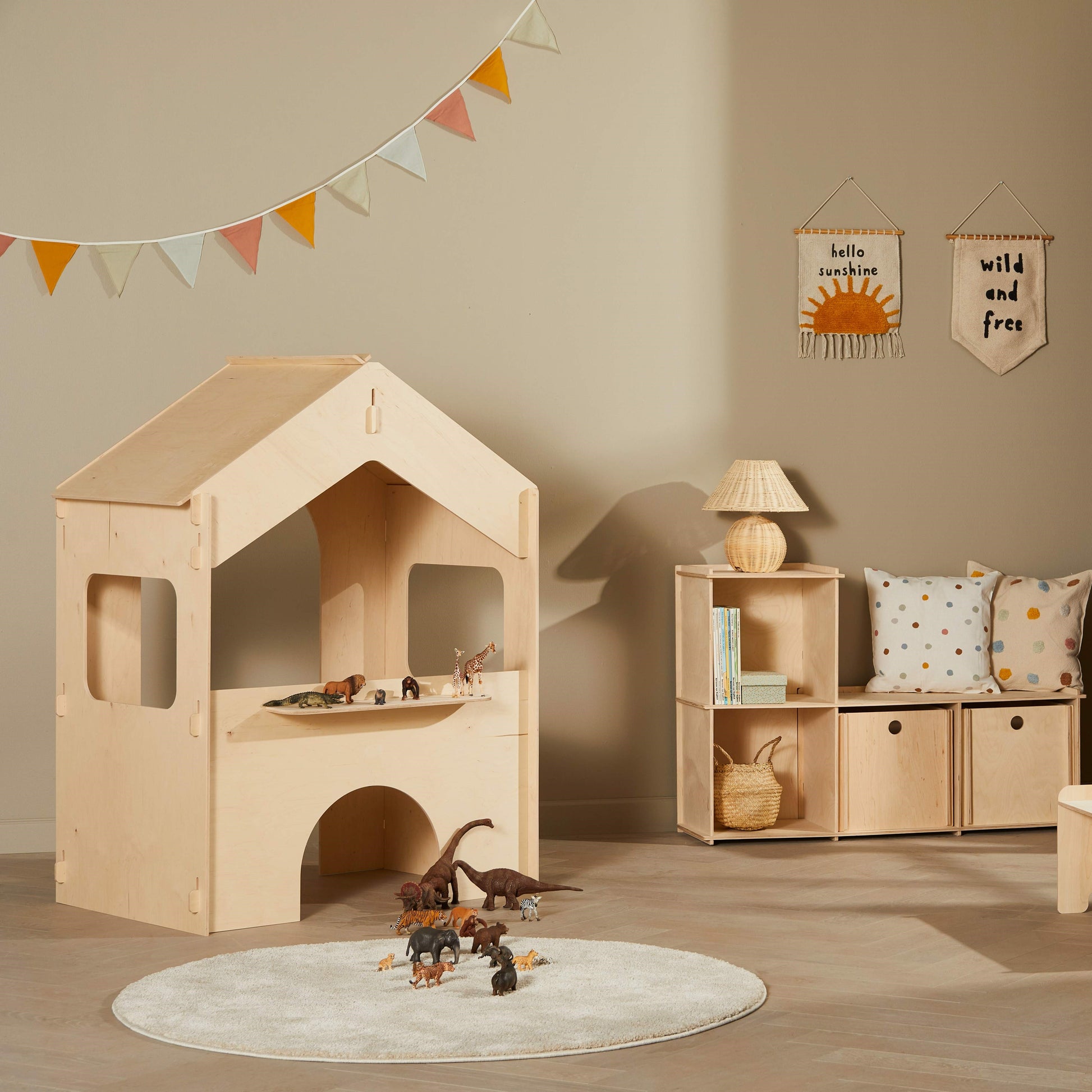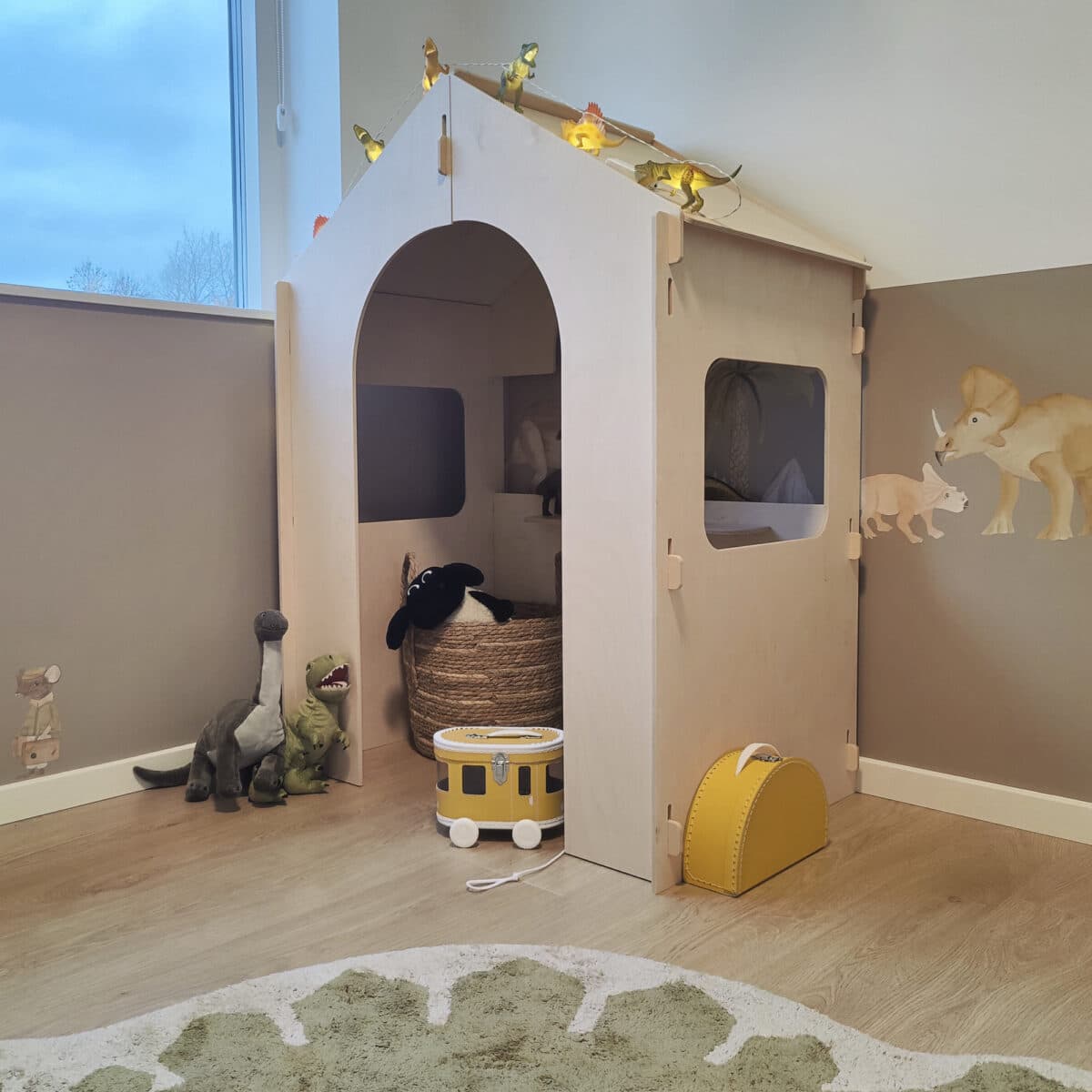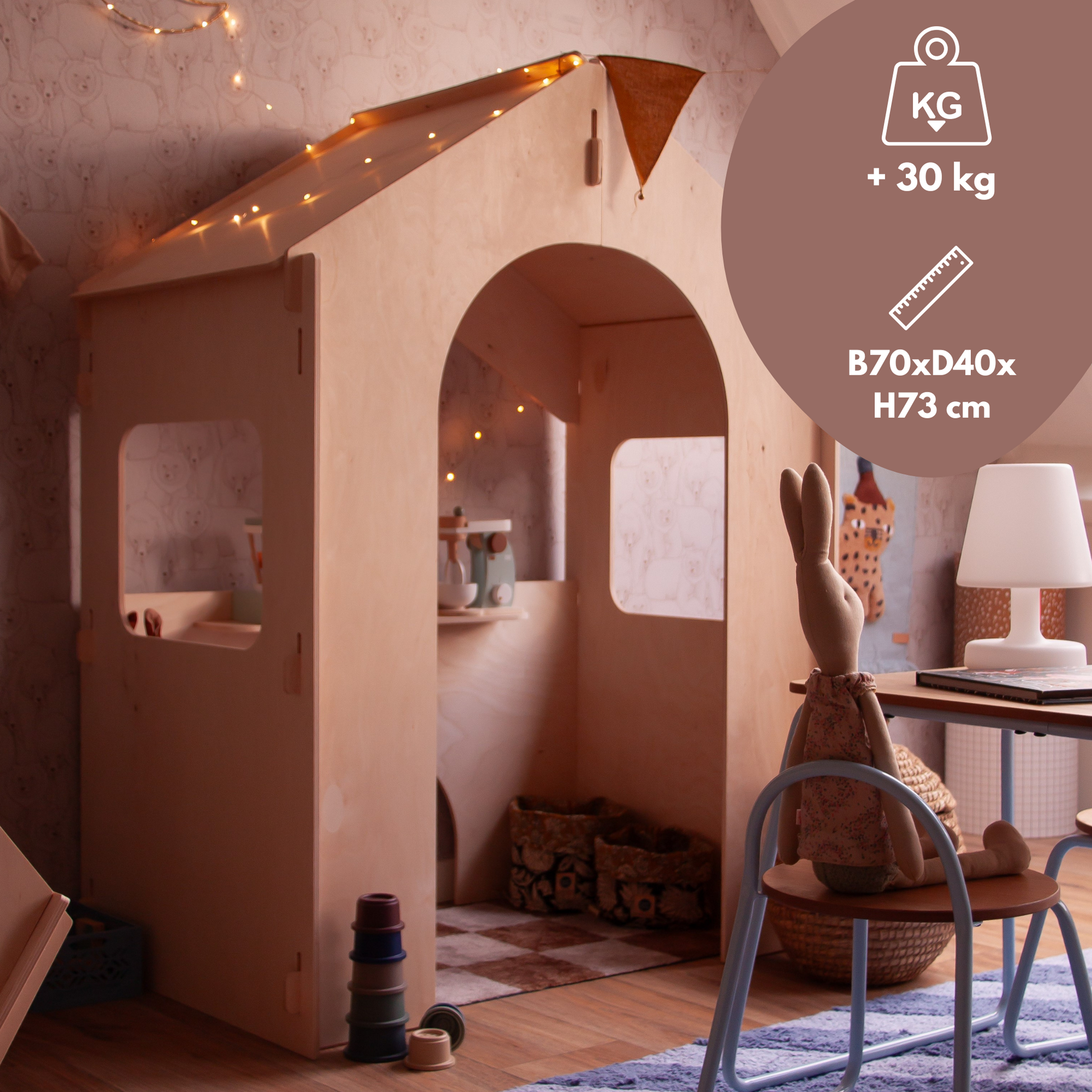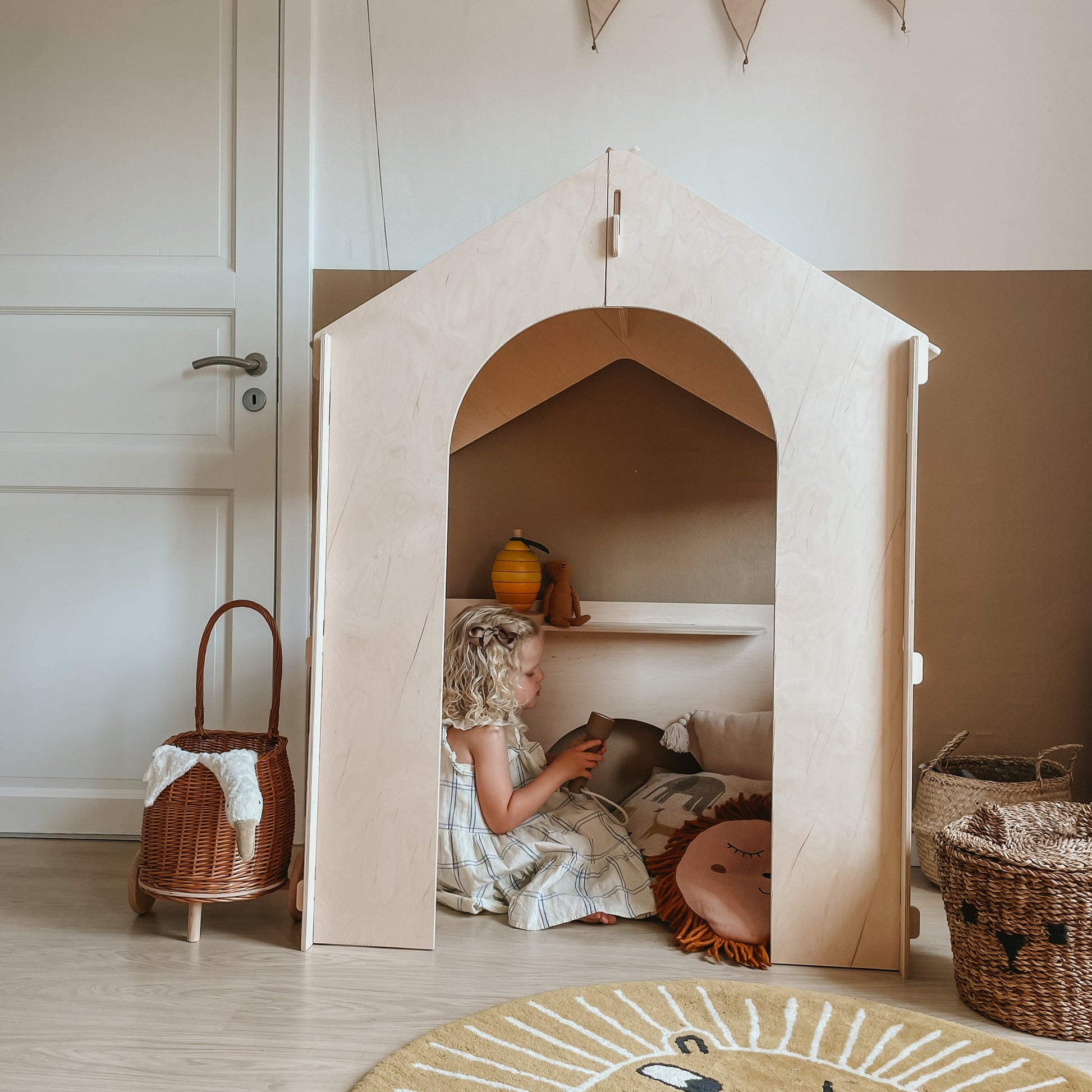 Plaats het speelhuisje als een knus hoekje in de kamer, in de keuken-eetkamer of waar het voor jou het meest zinvol is om een speelhol te creëren waar de kleinste leden van het gezin hun 'toevluchtsoord' hebben met ruimte om zich te concentreren en op te gaan in goed spelen.