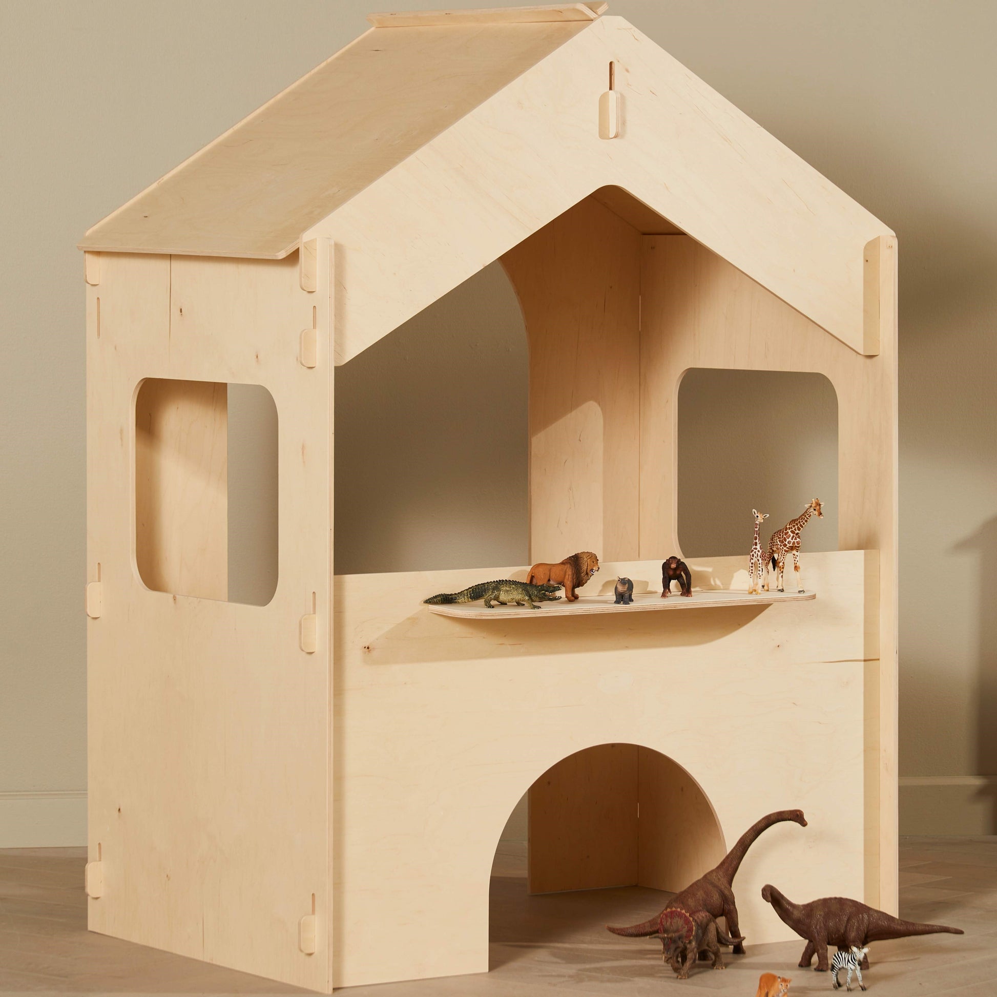 Met de grote opening van de hol in een gevel en de kleine plank die kan worden verplaatst om zowel binnen als buiten te zijn, is de grot ideaal voor rollenspellen als ijssalon of winkel - waar vrienden langs kunnen komen en door het raam limonade en een klein gebakje geserveerd krijgen. In de zomer kan het huisje buiten worden geplaatst (bij