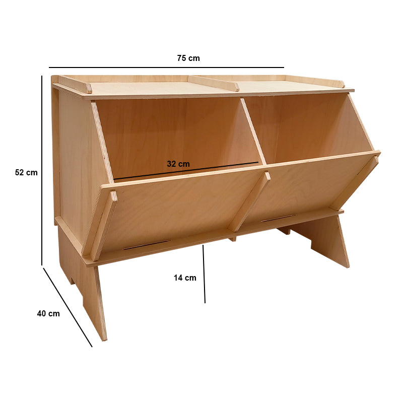 Dankzij de 2 compartimenten kunt u uw verschillende speeltjes sorteren en overzichtelijk opbergen. Zo hebben knuffels, poppen en auto's elk hun eigen plekje.