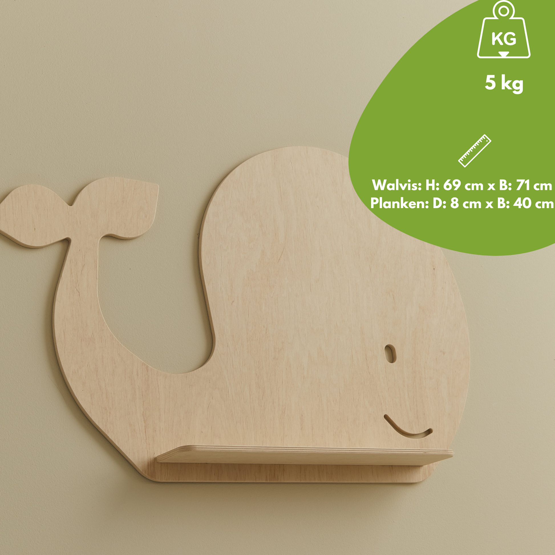 Deze schattige walvis staat geweldig in elke kinderkamer. De wandplank is ideaal voor snuisterijen, decoraties en andere kleine spulletjes.