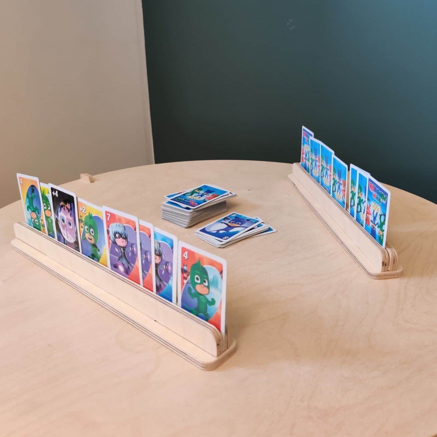 Geen grote broers of zussen en ouders meer die met de kaarten aan het rommelen zijn als ze moeten helpen om ze te sorteren. Met de speelkaarthouder hoeven kinderen zich geen zorgen te maken dat ze te veel kaarten in hun handen hebben. In plaats daarvan kunnen ze ze in deze mooie speelkaarthouder stoppen.