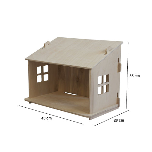 Het Villa Agnes poppenhuis is ons kleinste poppenhuis ooit. Het poppenhuis heeft maar één kamer. Het kan op een plank worden geplaatst zodat kinderen gemakkelijk en toegankelijk van en naar het spelen met de poppen kunnen gaan. Tegelijkertijd kunnen de poppen ook mooi worden uitgestald.