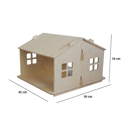 Een gelijkvloers poppenhuis met 2 ruime kamers die gemakkelijk kunnen worden aangepast voor schattige kleine poppen, dieren of figuurtjes.